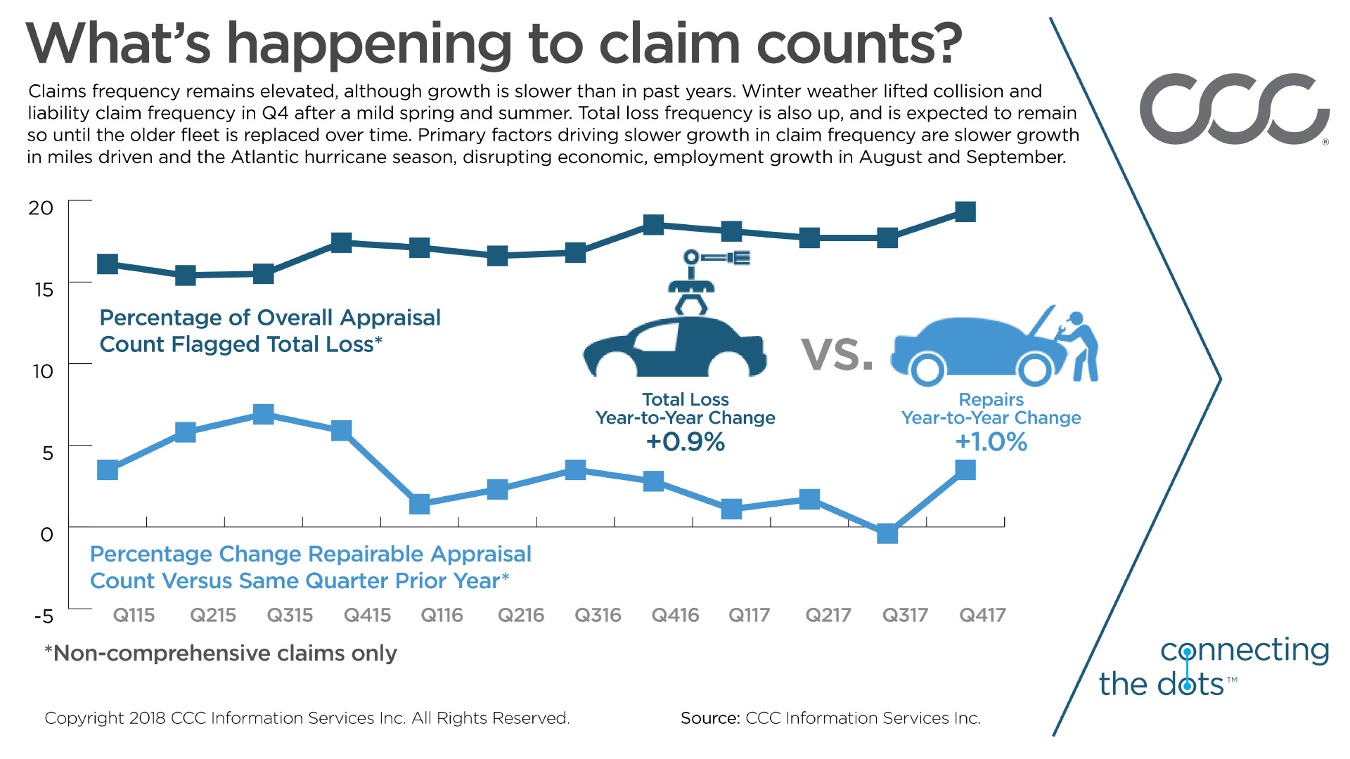 The chart below illustrates how accident counts have grown; specifically, the year-over-year change in the number of auto claims where the vehicle was identified as repairable.
